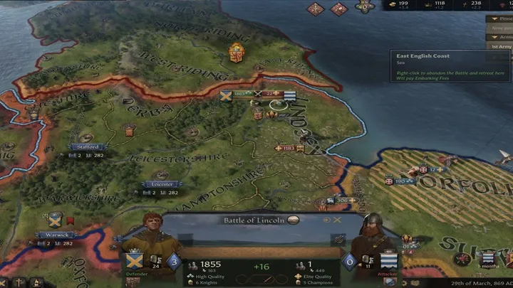 Warfare in Crusader Kings III is not just about numbers. Terrain, commanders, and morale influence outcomes.